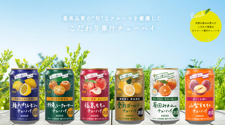 「アスター」チューハイ 果実のこだわり・産地がより伝わるパッケージへと刷新