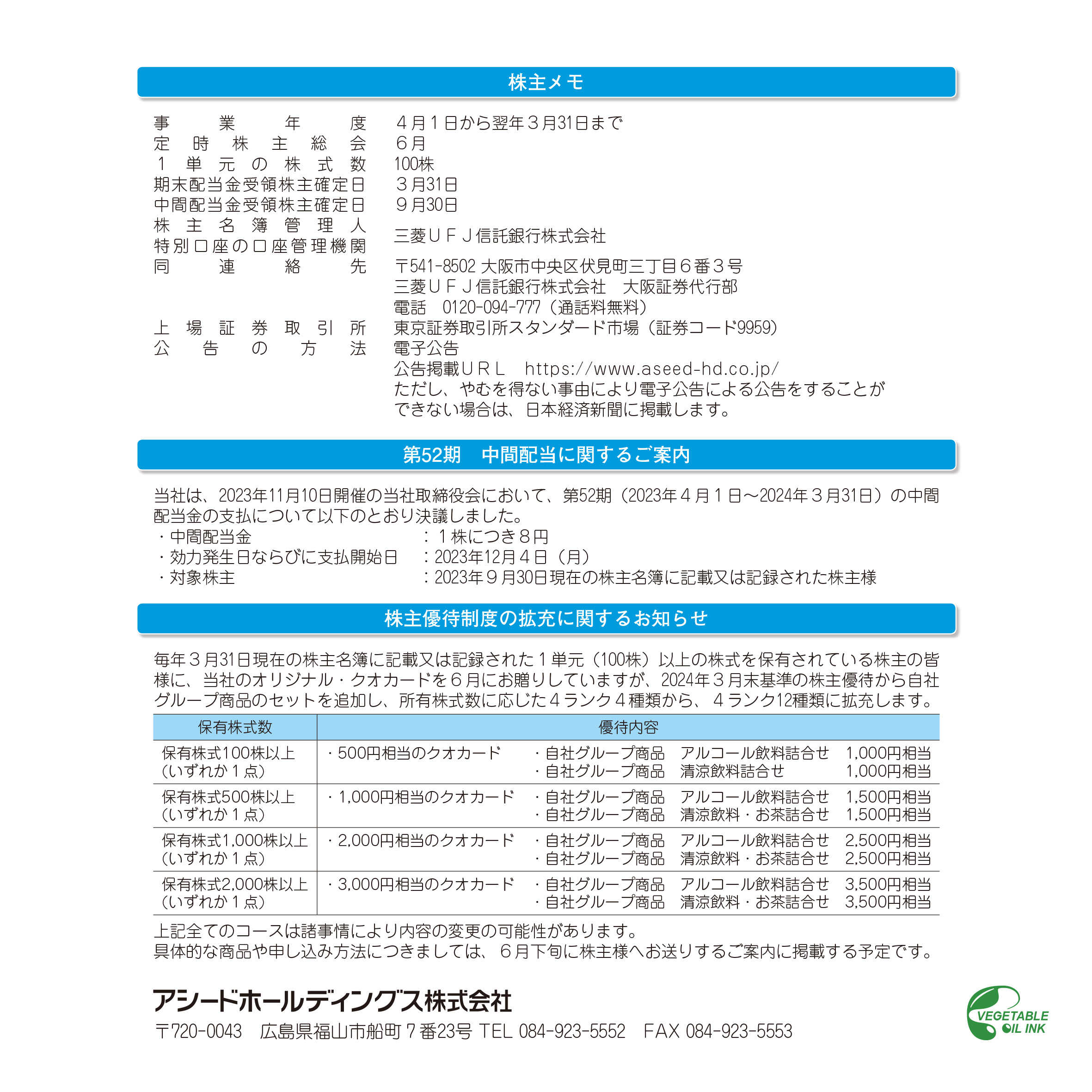 株主優待のご案内(2025年度)